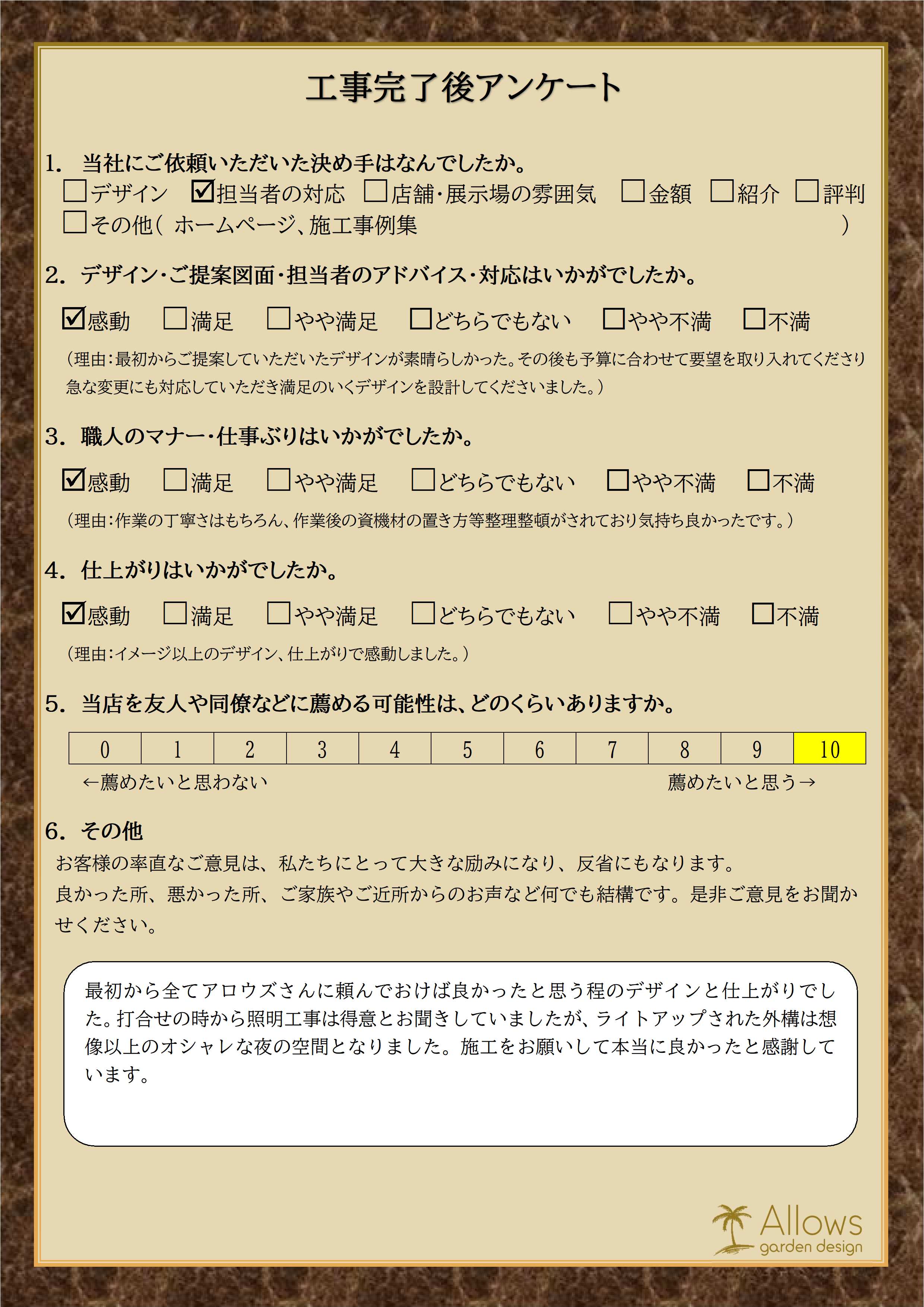 またすべてに高評価をしていただき、担当デザイナー、職人への温かいお言葉大変励みになります。