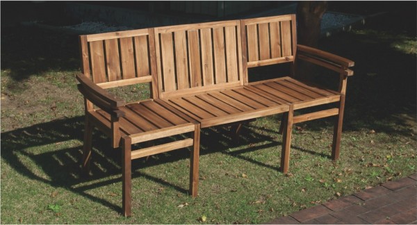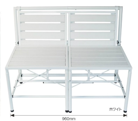 3人掛けのベンチが、2人掛け+テーブルに変身します。