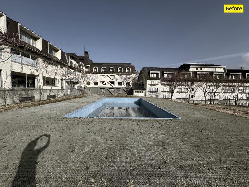 老朽化による漏水で使えていなかったプールのリニューアルをさせていただき、現在は外国のお客様を中心に活気あふれるプールガーデンとなっております。