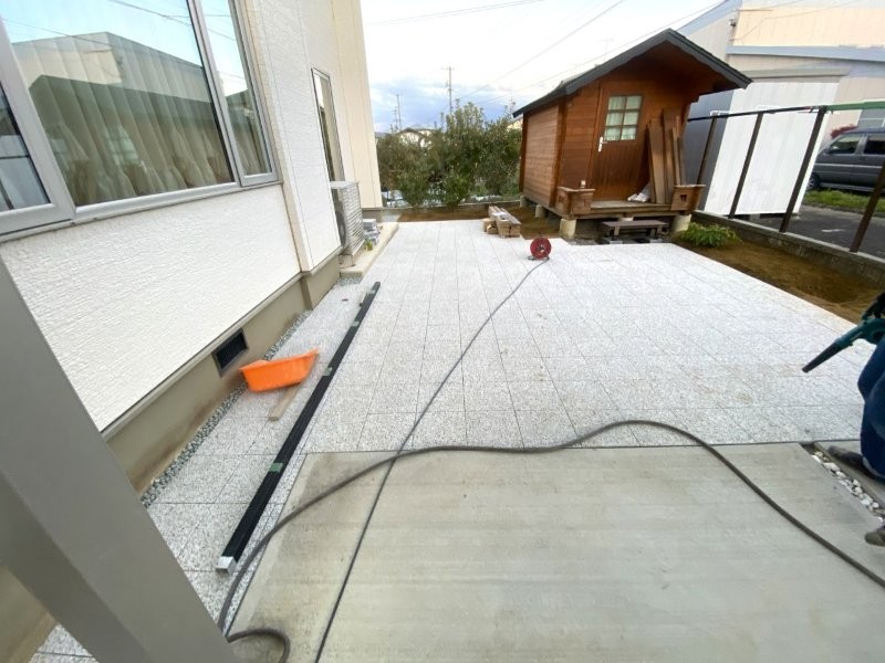 インターロッキングの効果でお庭がグレードアップ!フェンスも設置したのでプライバシーも保護されました。