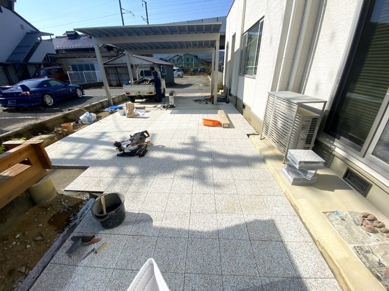 お庭の舗装にインターロッキングを使用した施工例です。