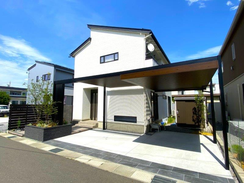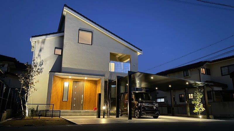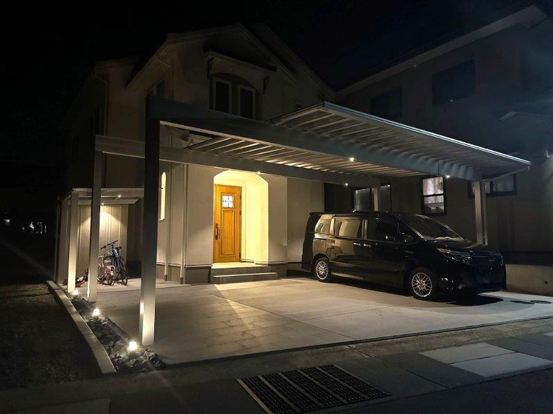 カーポートが魅力的なファサード物件のご紹介です。昼と夜の違いをお楽しみください。