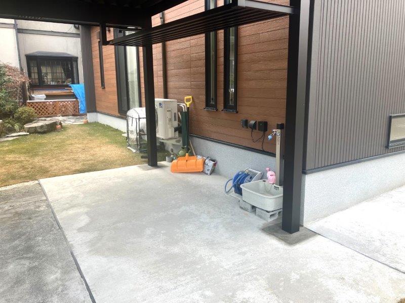 今回の工事はカーポートの柱と住宅の間がとても狭く、お客さまも心配されておりました。