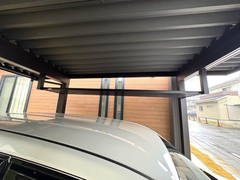 今回設置したカーポートはYKK ap『ジーポート Pro』になります。またお客様のご要望で、三協アルミ『 上吊り収納棚』も設置いたしました。