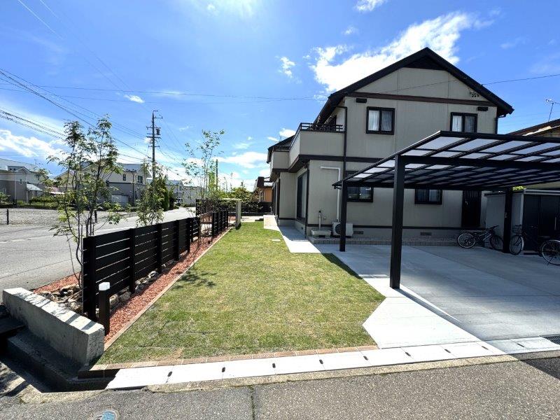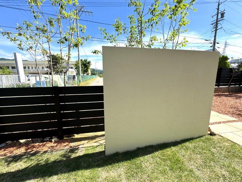 開放感がありながらも、要所要所はフェンスや門袖、植栽で視線を散らしています。