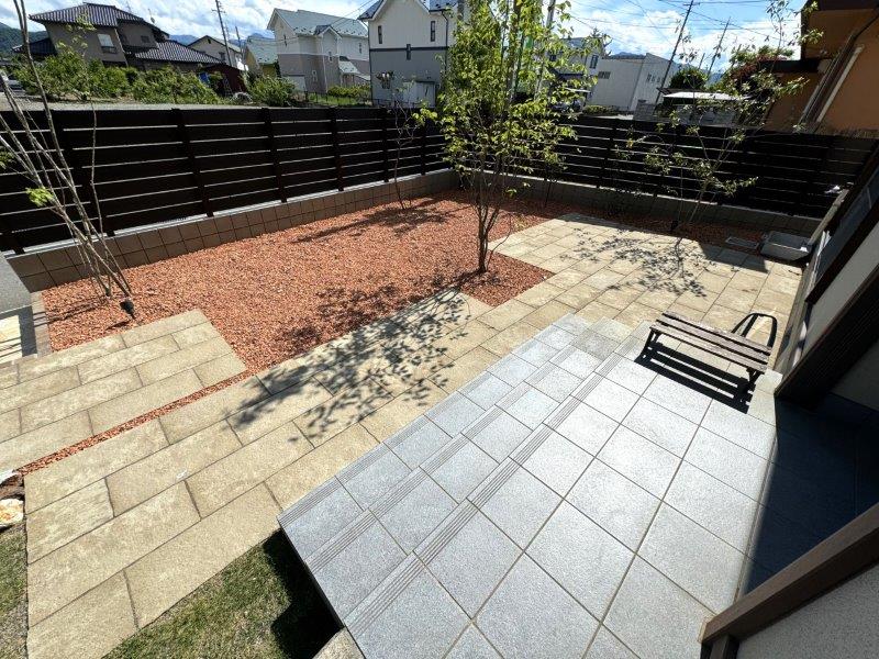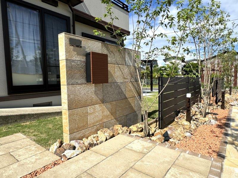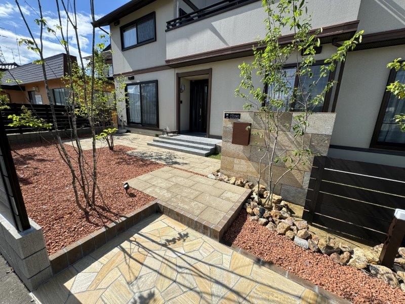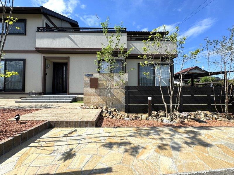 天然素材や、天然に近い模様の素材を多用し、やわらかい印象の素敵なエクステリアが完成しました!
