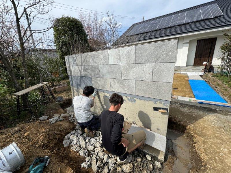 門袖のタイル張りとアプローチの天然石張りが進んでいますので、途中経過と共にご紹介します!