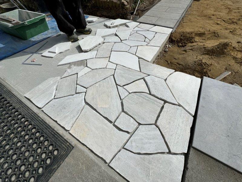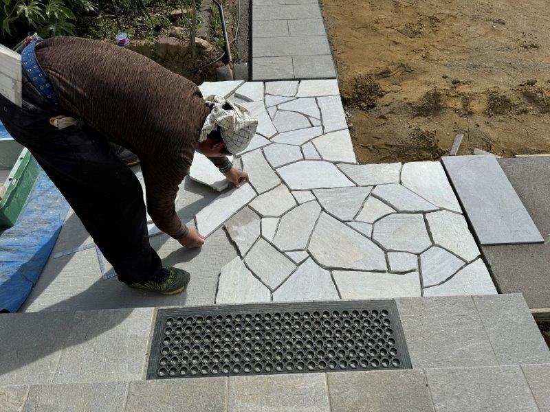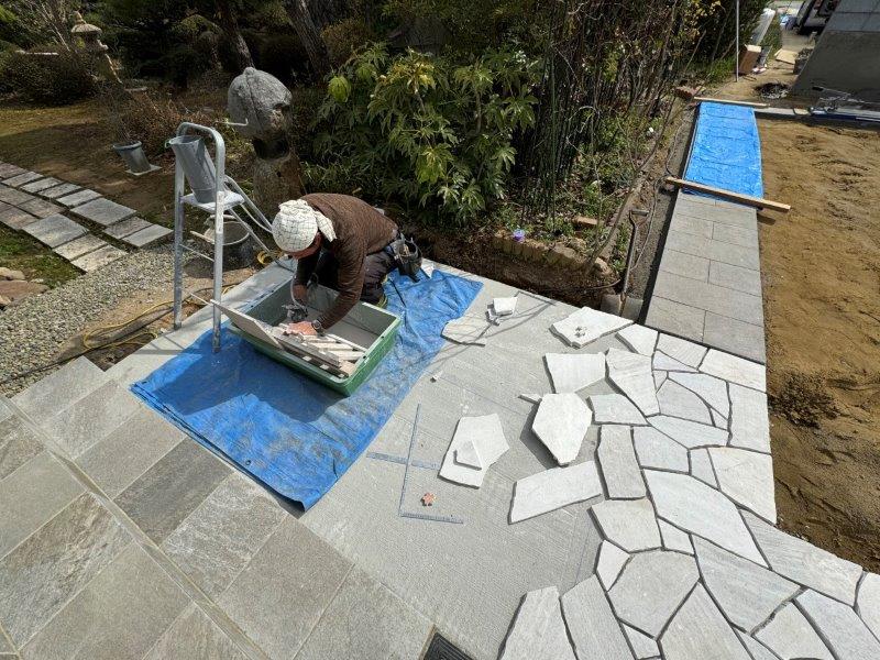 そこに、不揃いの乱形石を敷き詰めます。