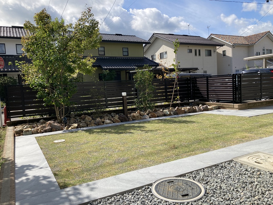 土のままだったスペースを天然芝のガーデンへ変更させていただき、フェンスも設置しました。