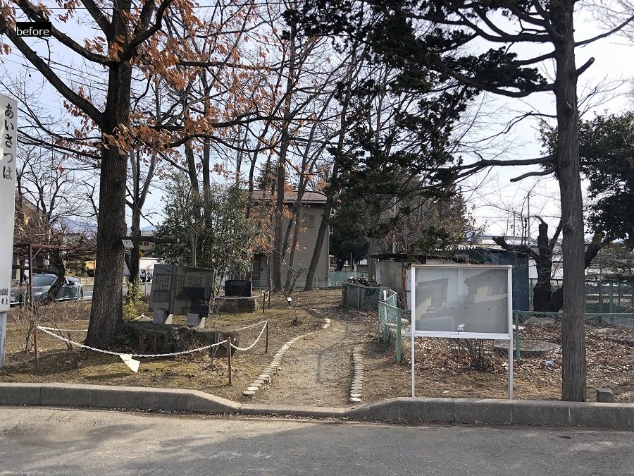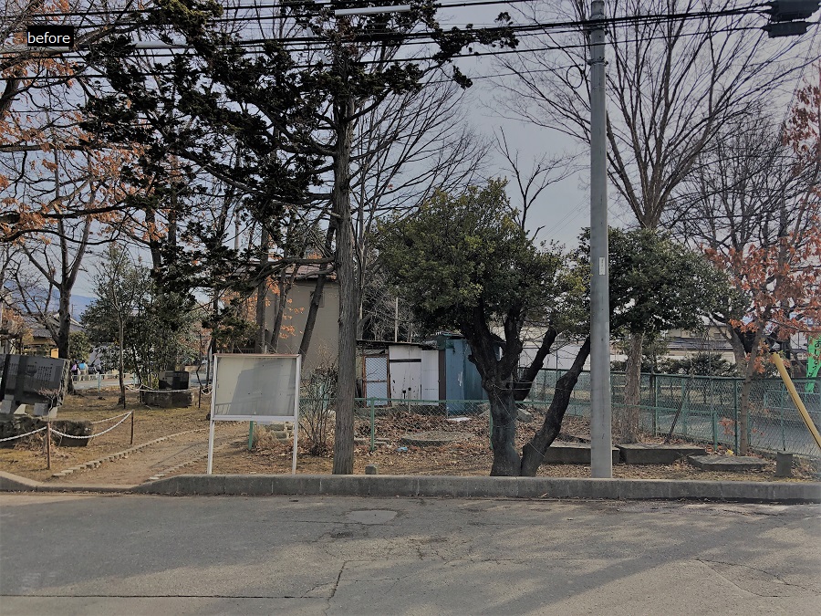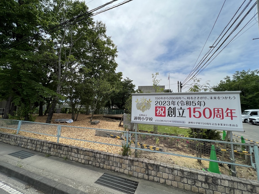 長野市立通明小学校の150周年記念事業として、正門横に新しい庭をつくらせていただいています。