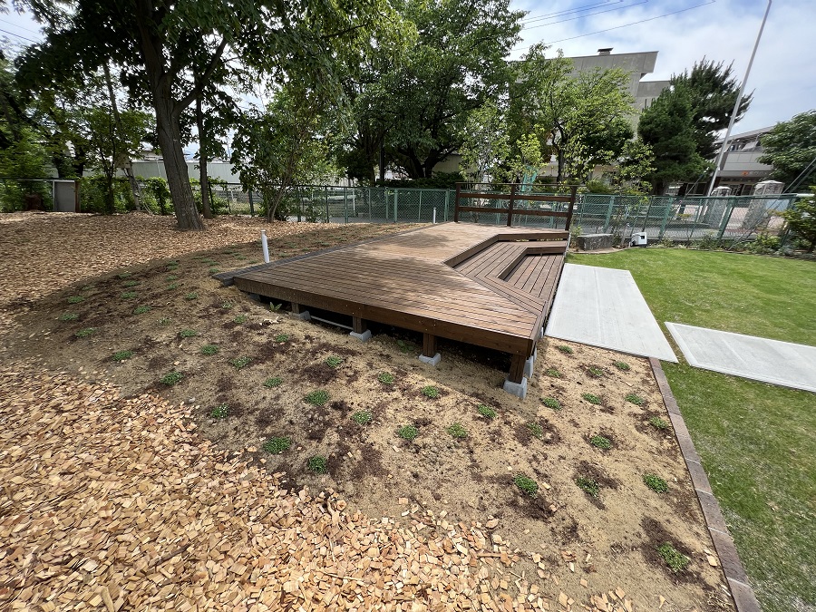 芝生や下草は、地域の方や児童たちと植え込みを行いました。