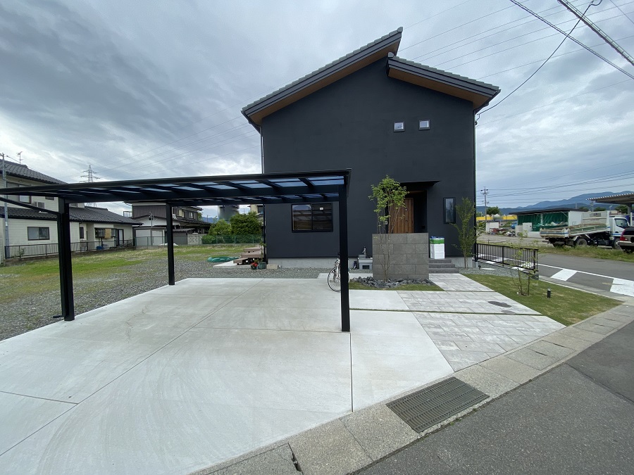 住宅とエクステリアが引き立つ、スッキリとしたおしゃれなファサード空間になりましたね!