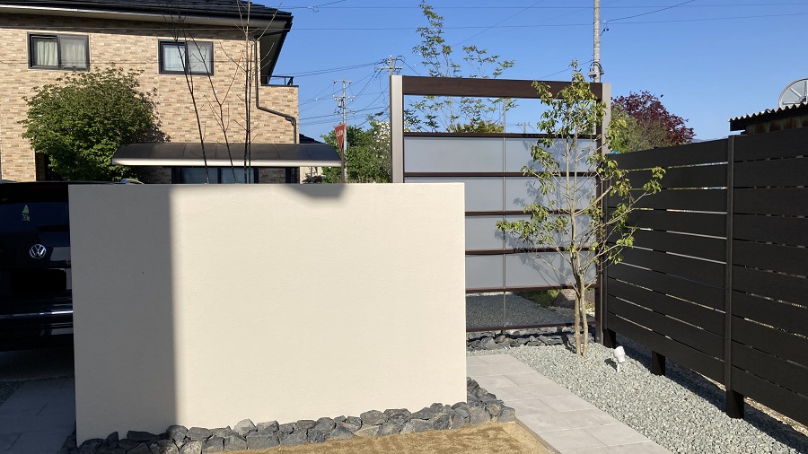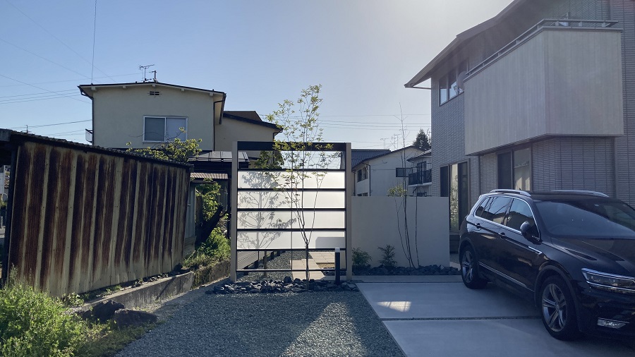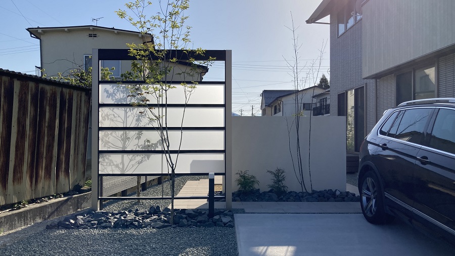 そこで、フェンス・デザインアーチ・ウォールを組み合わせ目隠しを設置。