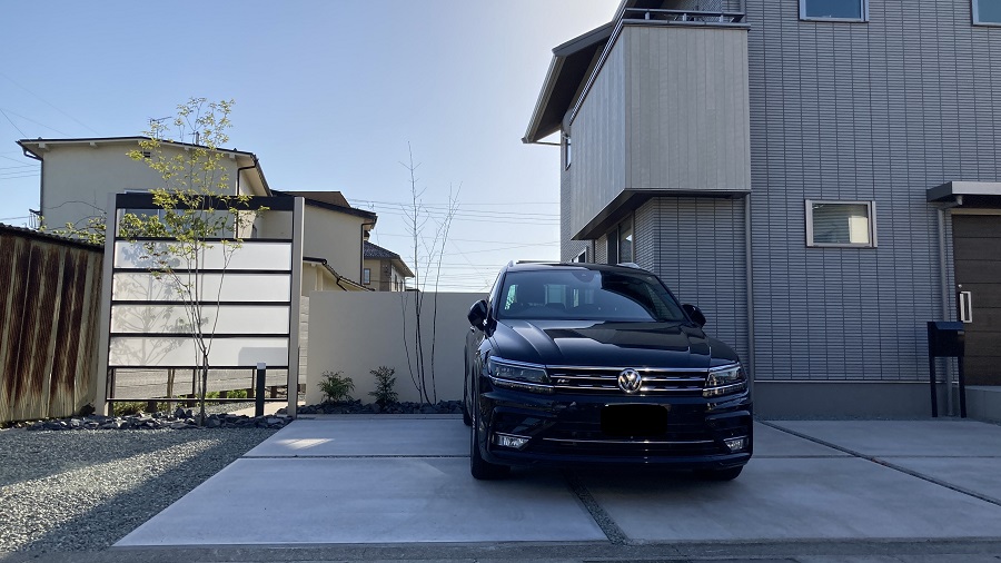 お車を駐車すると、お庭がしっかりと隠れるつくりになっています!