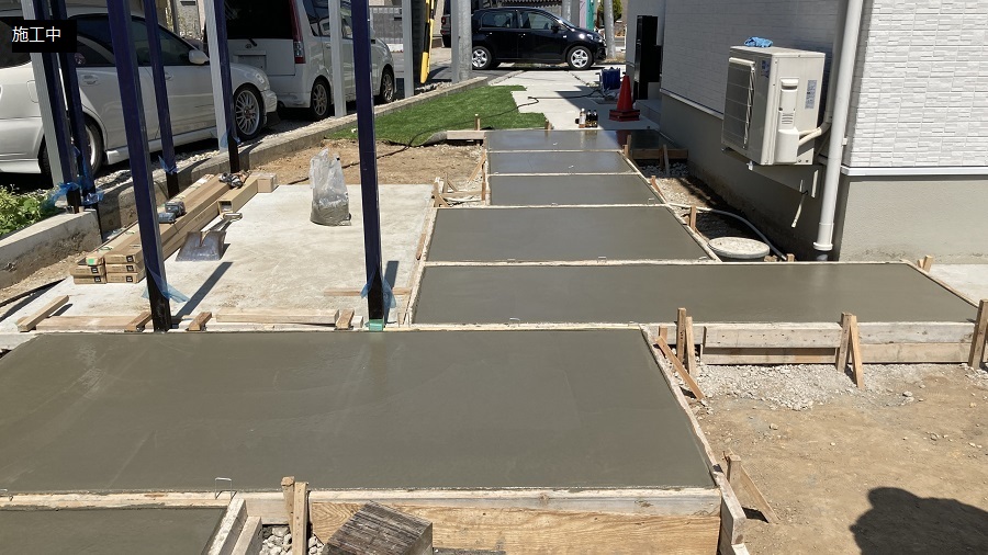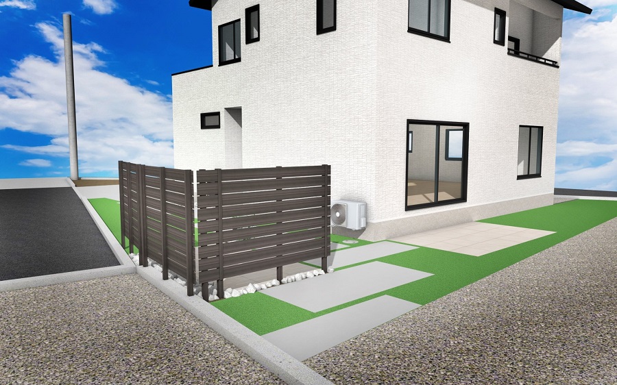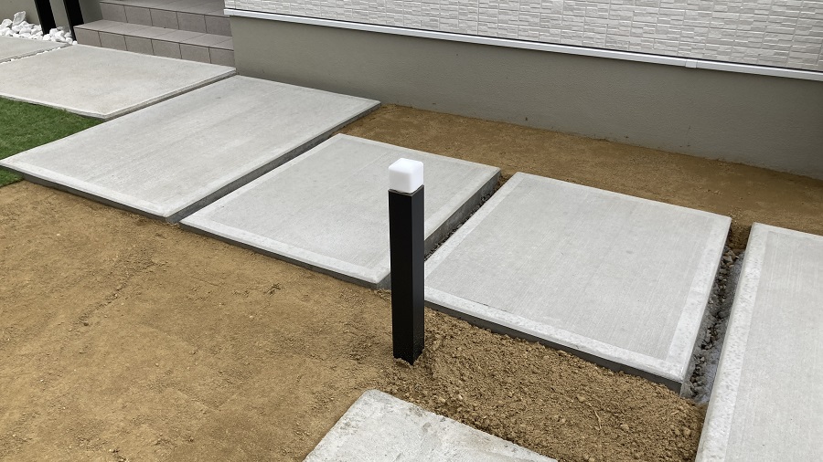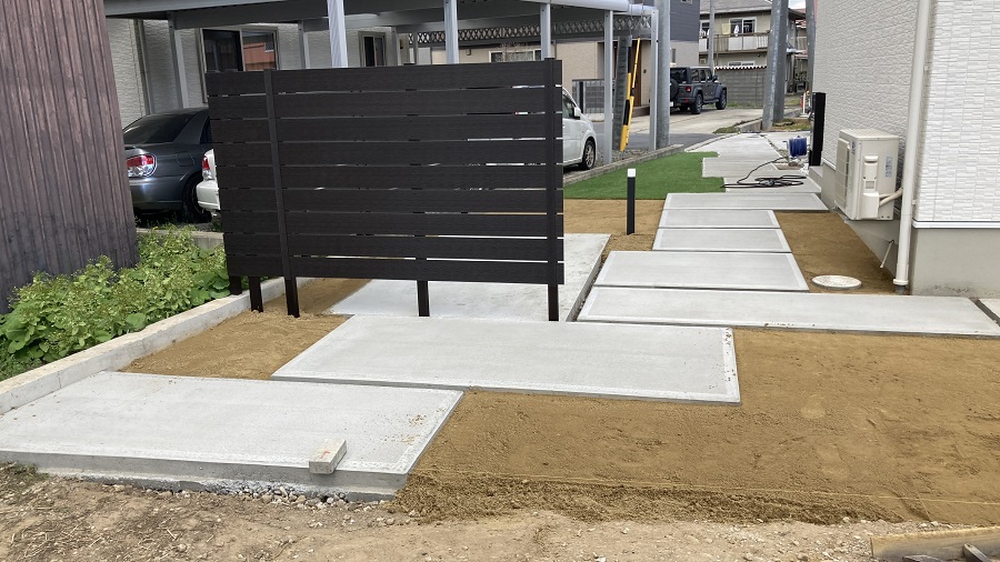 玄関先からお庭のタイルテラスへ続く園路と、過ごしやすいようにフェンスも設置していきます!