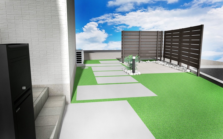 DIYが得意なご主人ですので、既にアプローチ部分には人工芝を施工されています!