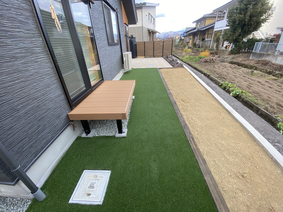 ローメンテナンスで緑も楽しめるガーデンが完成しました。