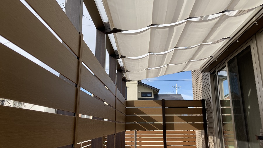 正面だけでなく横からの視線も気にならなくなり、以前のタープを設置されていた時より、快適にお過ごしいただけるかと思います✨