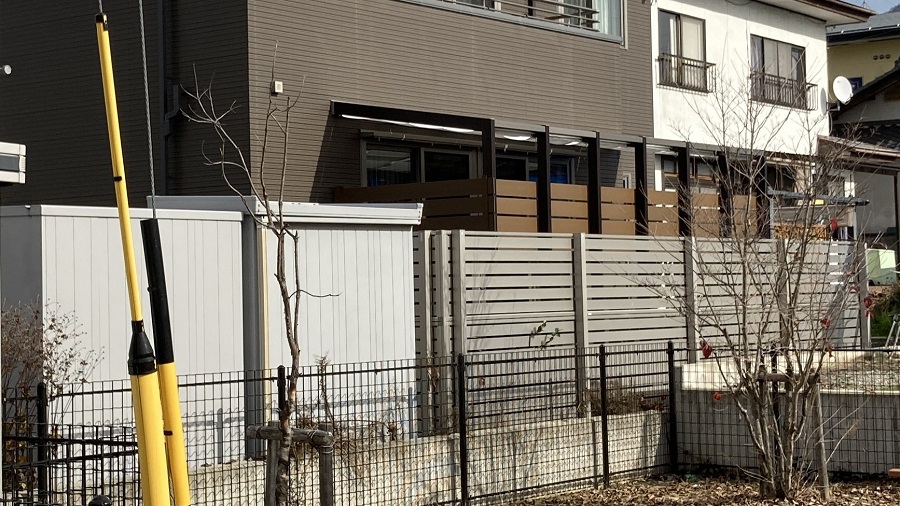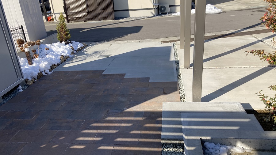 砂利敷きだったスペースの舗装と、テラス屋根の施工をさせていただきました。
