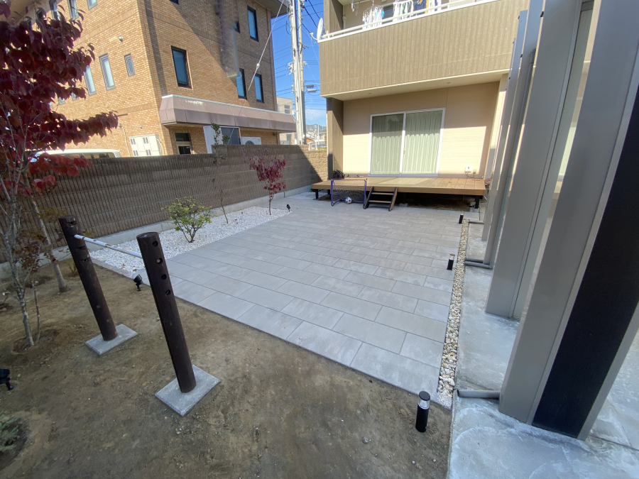 インターロッキングを敷き詰め、ローメンテナンスのガーデンが実現いたしました。
