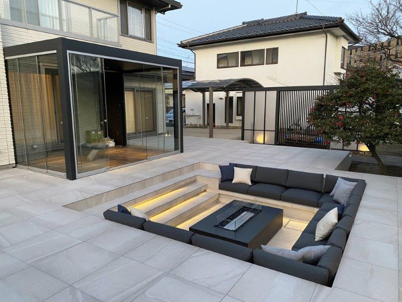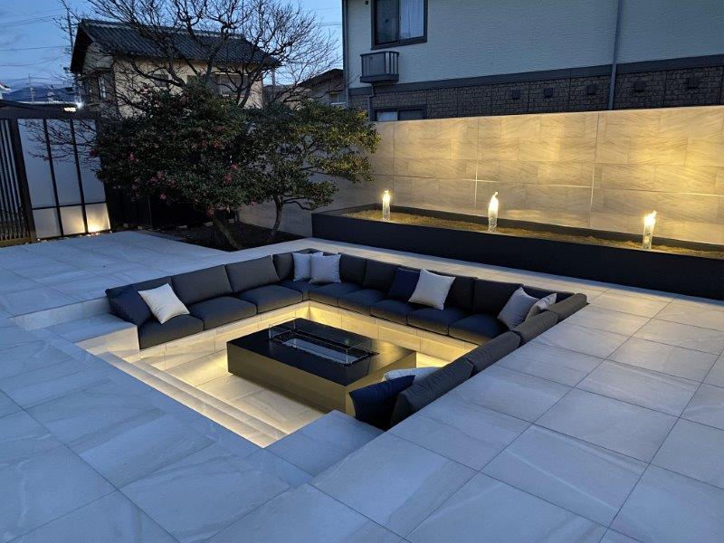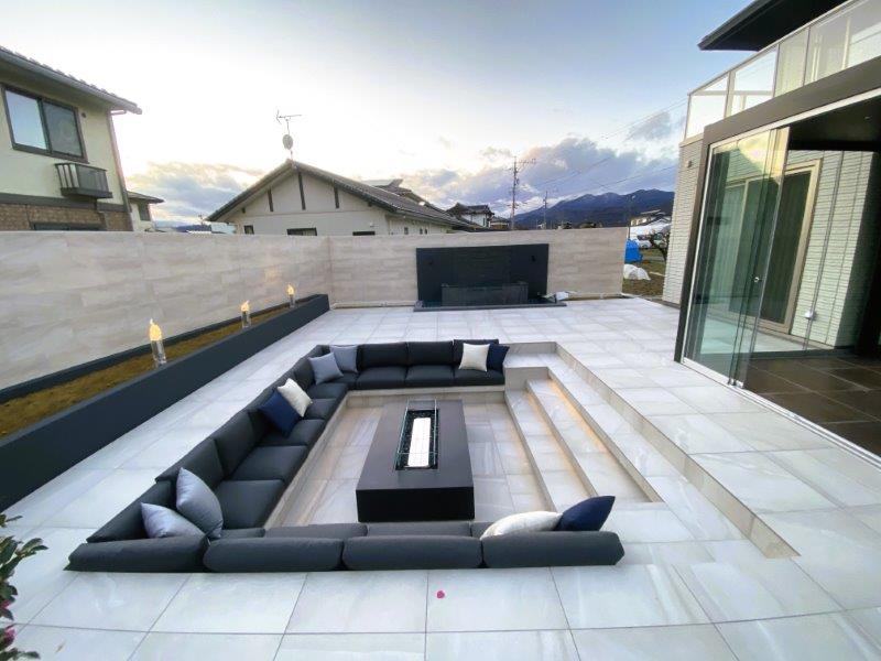 ガーデンの中央には、周囲より数段掘り下げたシッティングスペース。