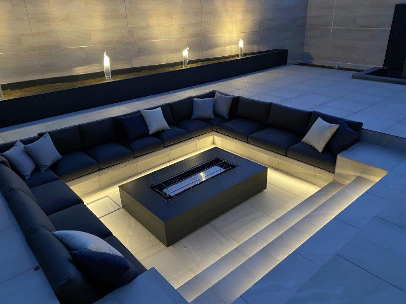 ステップ部分にも間接照明を仕込み、非日常感と高級感が演出されています。