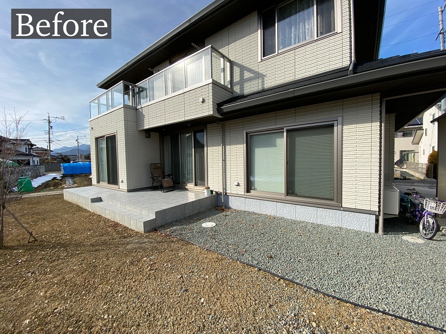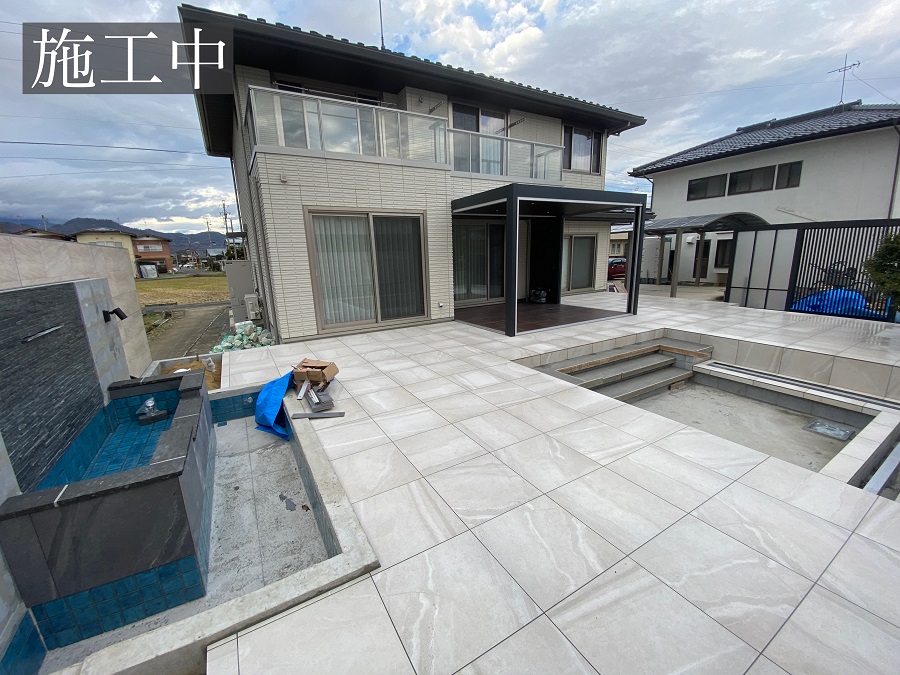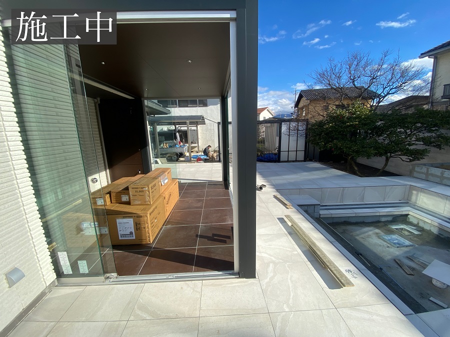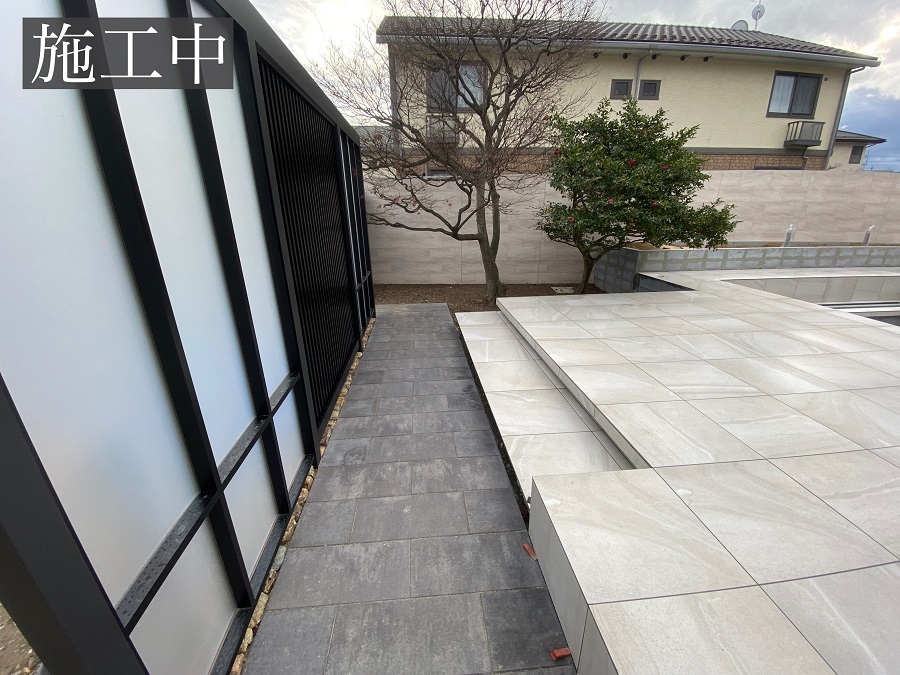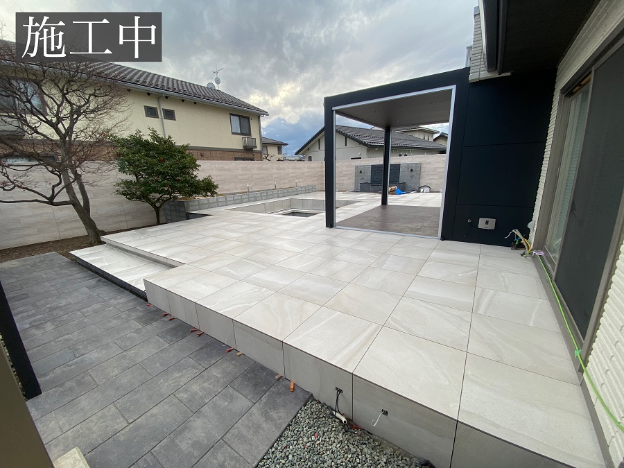 今回は、お庭の床面が全面タイル張りになるので、タイル柄のアートボードで統一感を演出しました。