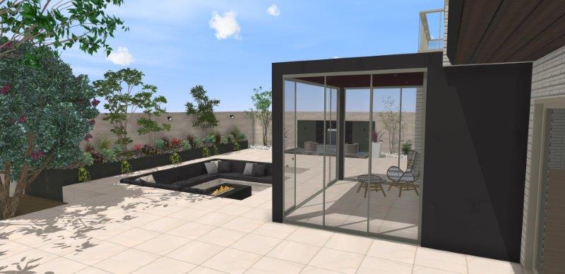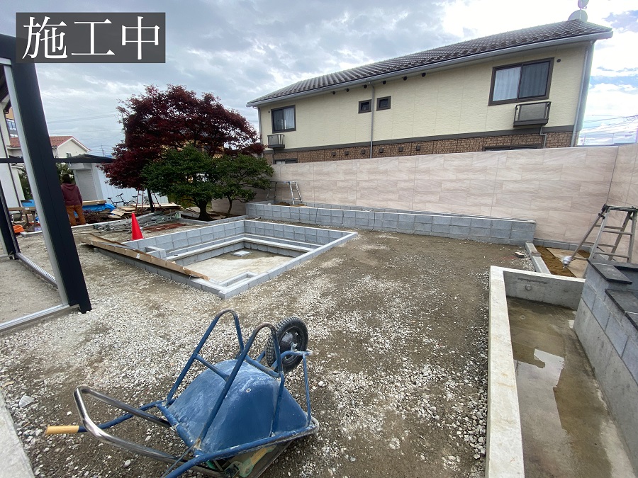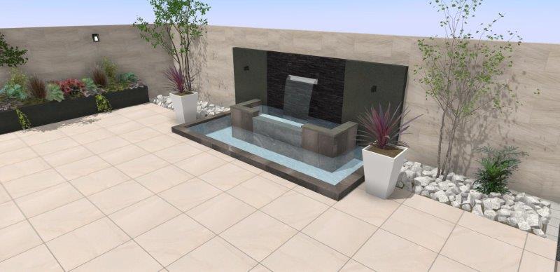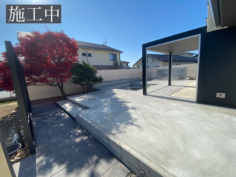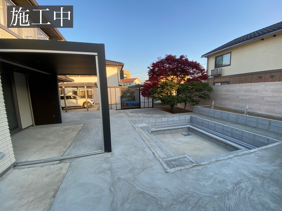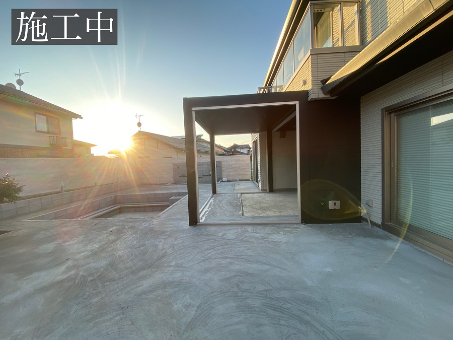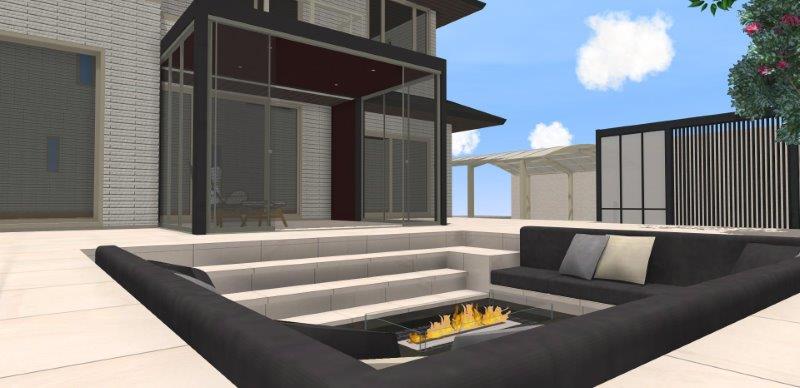 今回は、お庭の床面が全面タイル張りになるので、タイル柄のアートボードで統一感を演出しました。