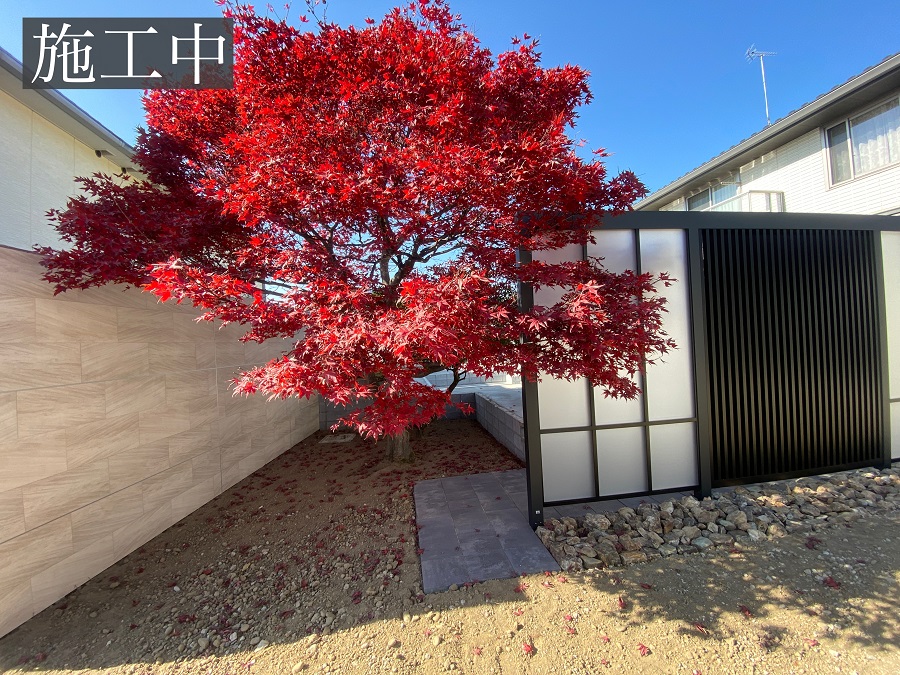 既存の樹木の多くは別の場所へ移植させていただきましたが、こちらのモミジとツバキは引き続きお庭で目を楽しませてくれます!