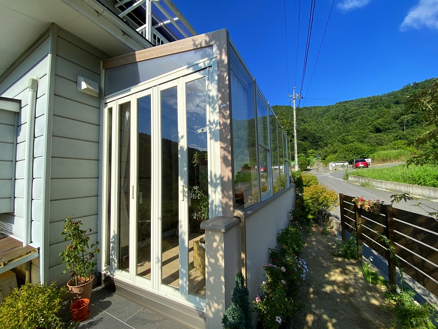 既存のテラス屋根からガーデンルームへリフォームいたしました。