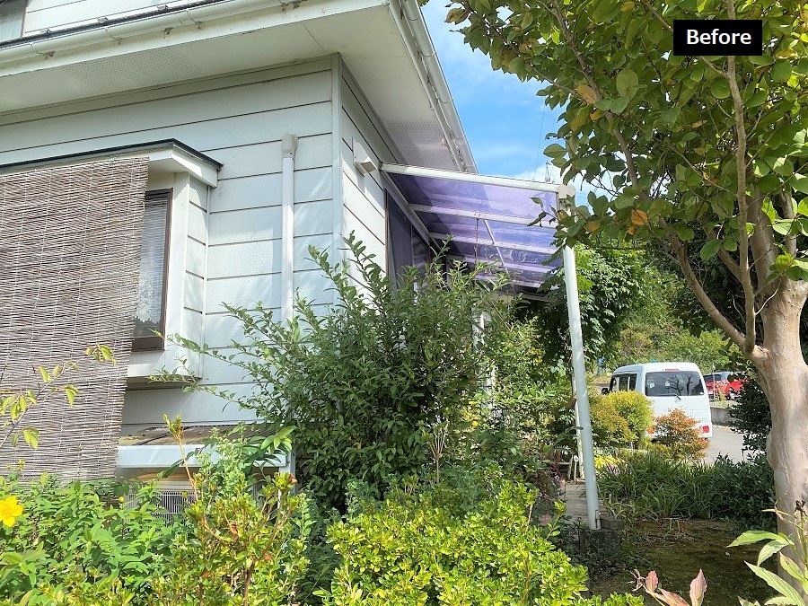 家周りは、育ちすぎた樹木を撤去しフェンスと花壇に。