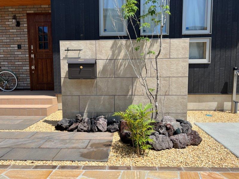 これだけの広い敷地ですが、化粧砂利の下も防草シートが敷いてあるので、メンテナンスは植木と芝生の部分だけです。