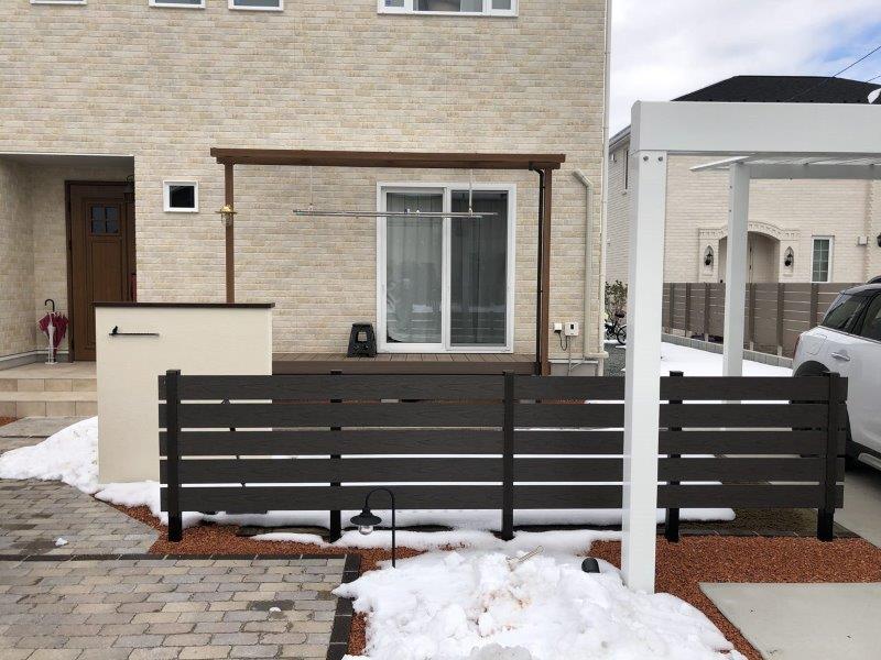 ガーデンの目隠しとして、低めの樹脂製フェンスを設置。