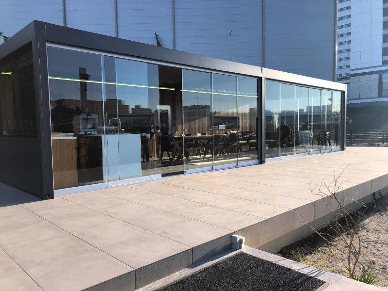 このようなサッシは、オーストラリアの邸宅を視察した時に良く見られましたが、手動だったため動かすのに苦労した記憶があります。