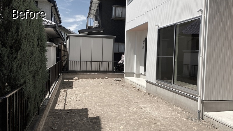 玄関前やカースペースは砂利敷き、ガーデンスペースは土と言う状況です。