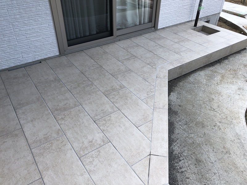 天然石張りや石調のタイルを使用し、ナチュラル感が溢れるガーデン出来上がってきました。