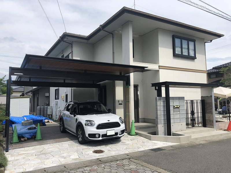 エントランスゲートとカーポートはYKKのエクスティアラで統一。