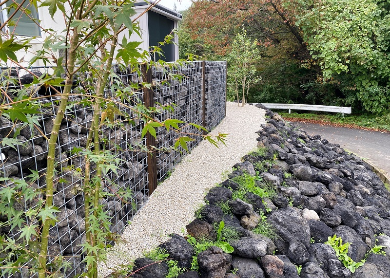 ガビオン内の石は浅間石を使用。