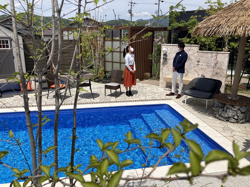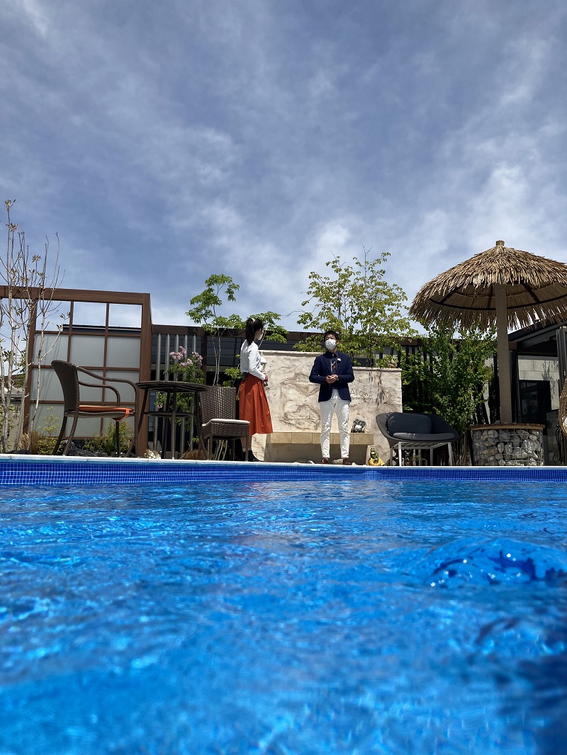 長野県内の様々なテレビでもお馴染みの恵理さんがレポーターとして、プール、ファニチャー、アウトドアリビングの取材をしていただきました。
