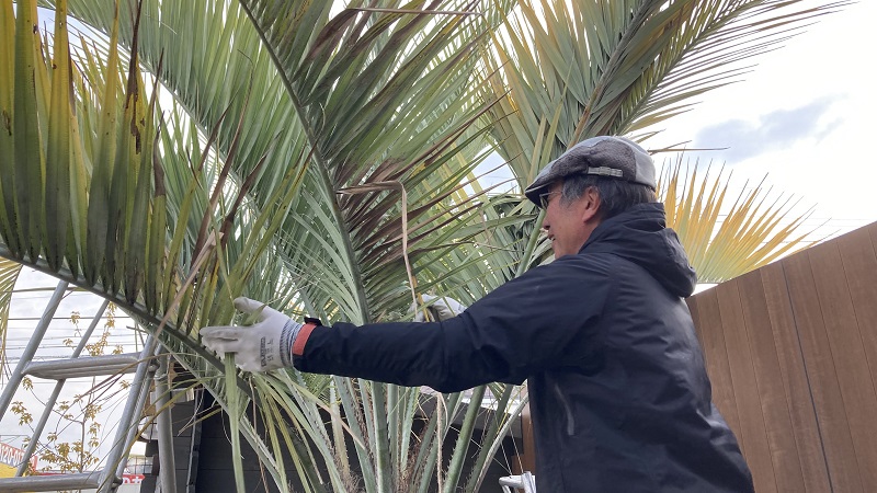 広がった葉を一つにまとめる作業から行っていきます。