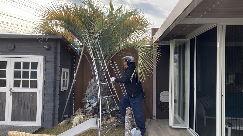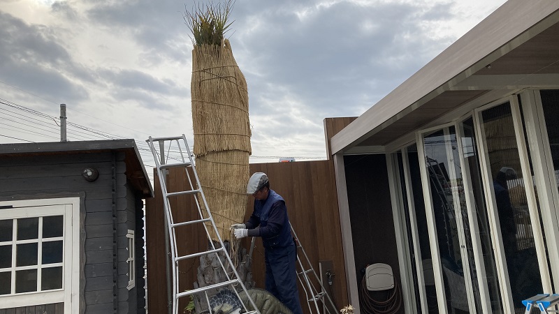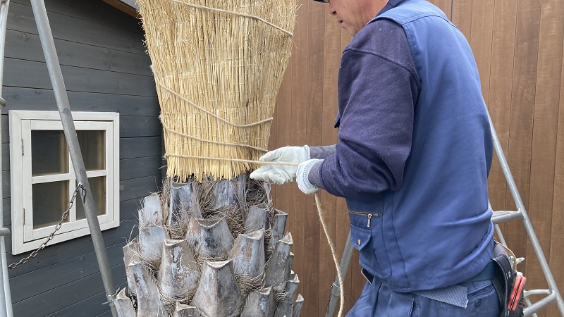 弊社自慢の植木職人さんに冬囲いをしていただきました。