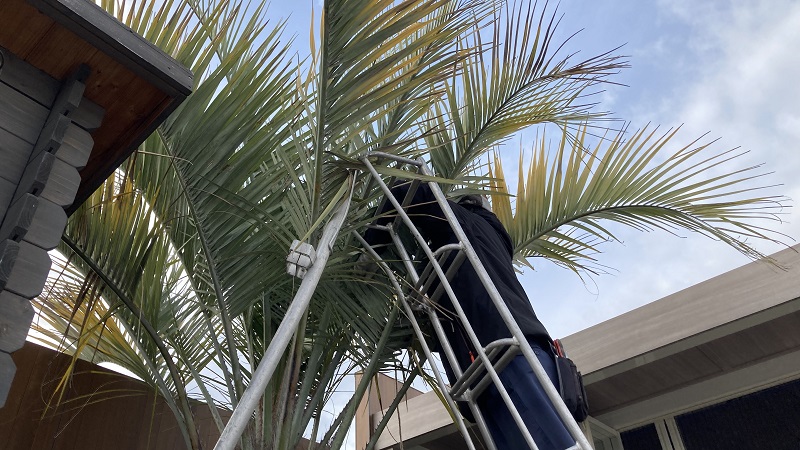 展示場のシンボルになっているココスヤシは、耐寒性がないため本来長野には適していない樹種です。