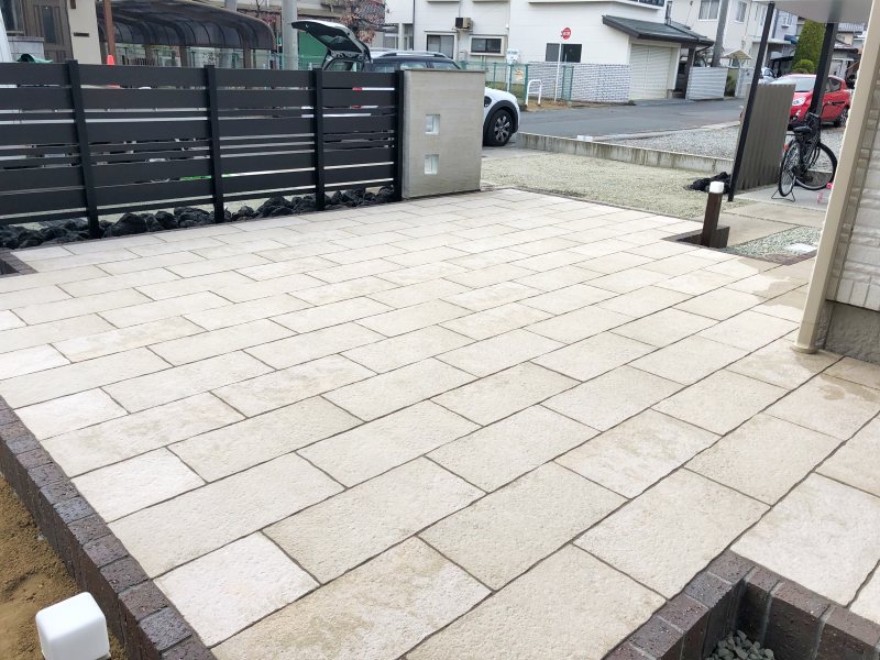 テラス空間は石畳風のインターロッキングを使用しています。
