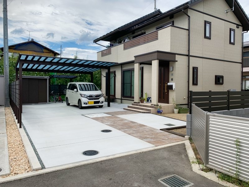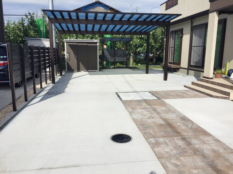 カースペースにコンクリートだけだと間延びした空間になりやすいので、
