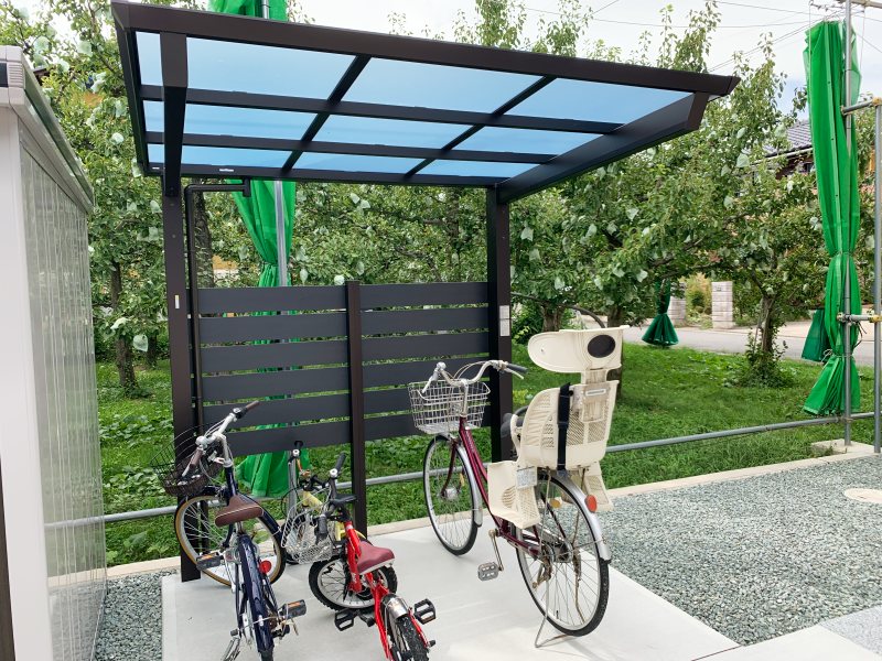 カーポートと駐輪スペースは同じメーカーを使用し、シームレスなつながりを大事にしています。