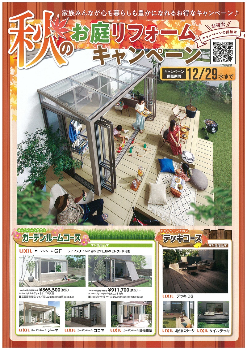 10/1~12/29に秋のお庭リフォームキャンペーンを開催いたします。