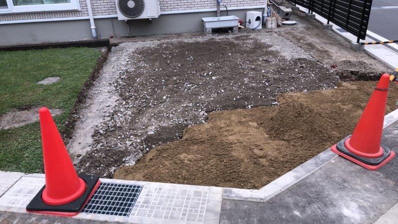 お子様とプールで遊ぶスペースとして、透水性インターロッキングを施工します。