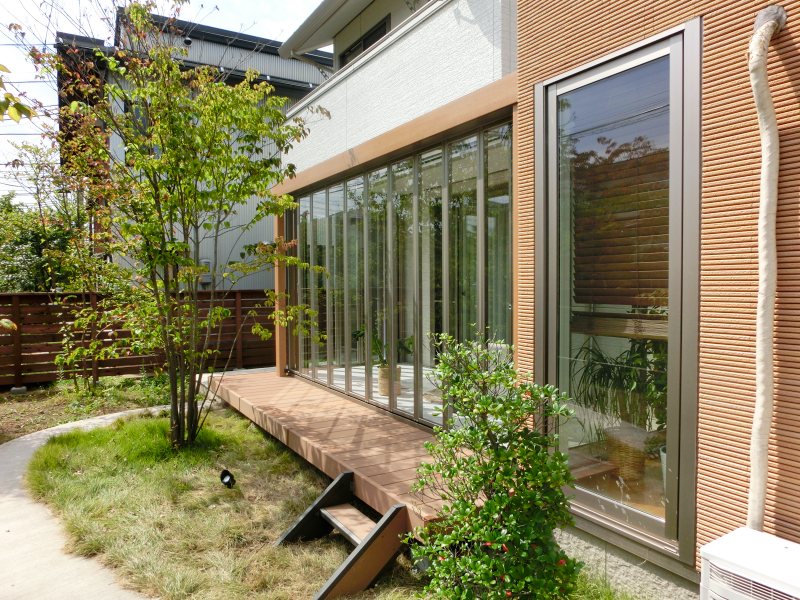 外のウッドデッキは既存のものを使用して、無駄が出ない施工を行っています。