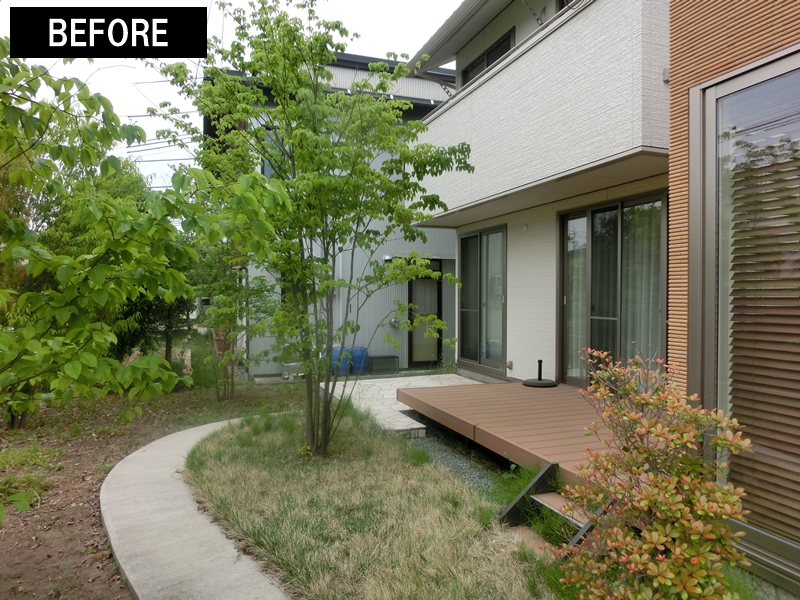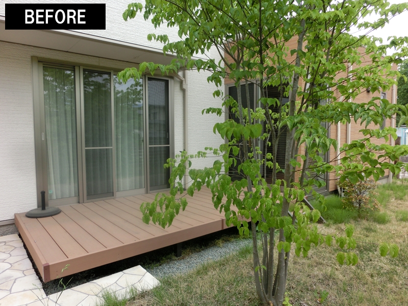 施工前はウッドデッキがお庭にあるだけで、過ごすスペースとしては活用できていませんでした。