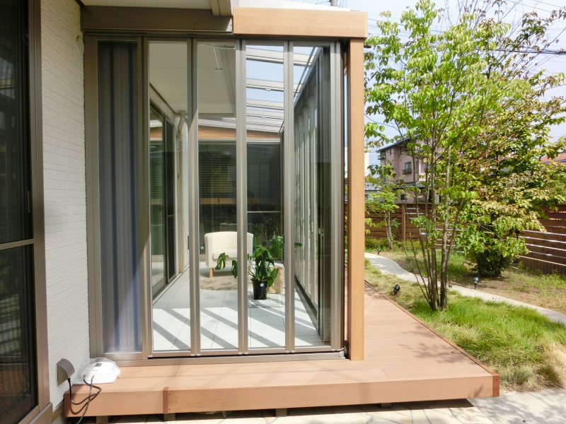お庭で過ごしていただきたいと思い、フルオープンタイプのガーデンルーム”ジーマ”をご提案させていただきました。